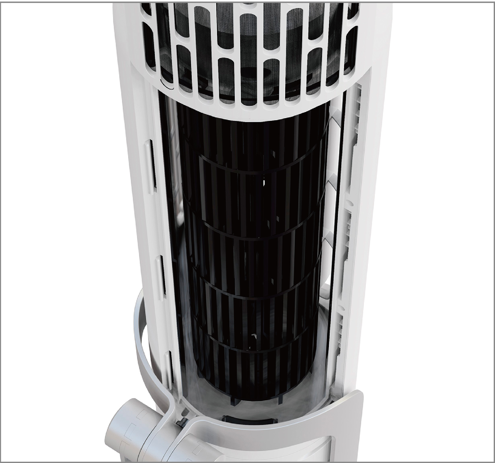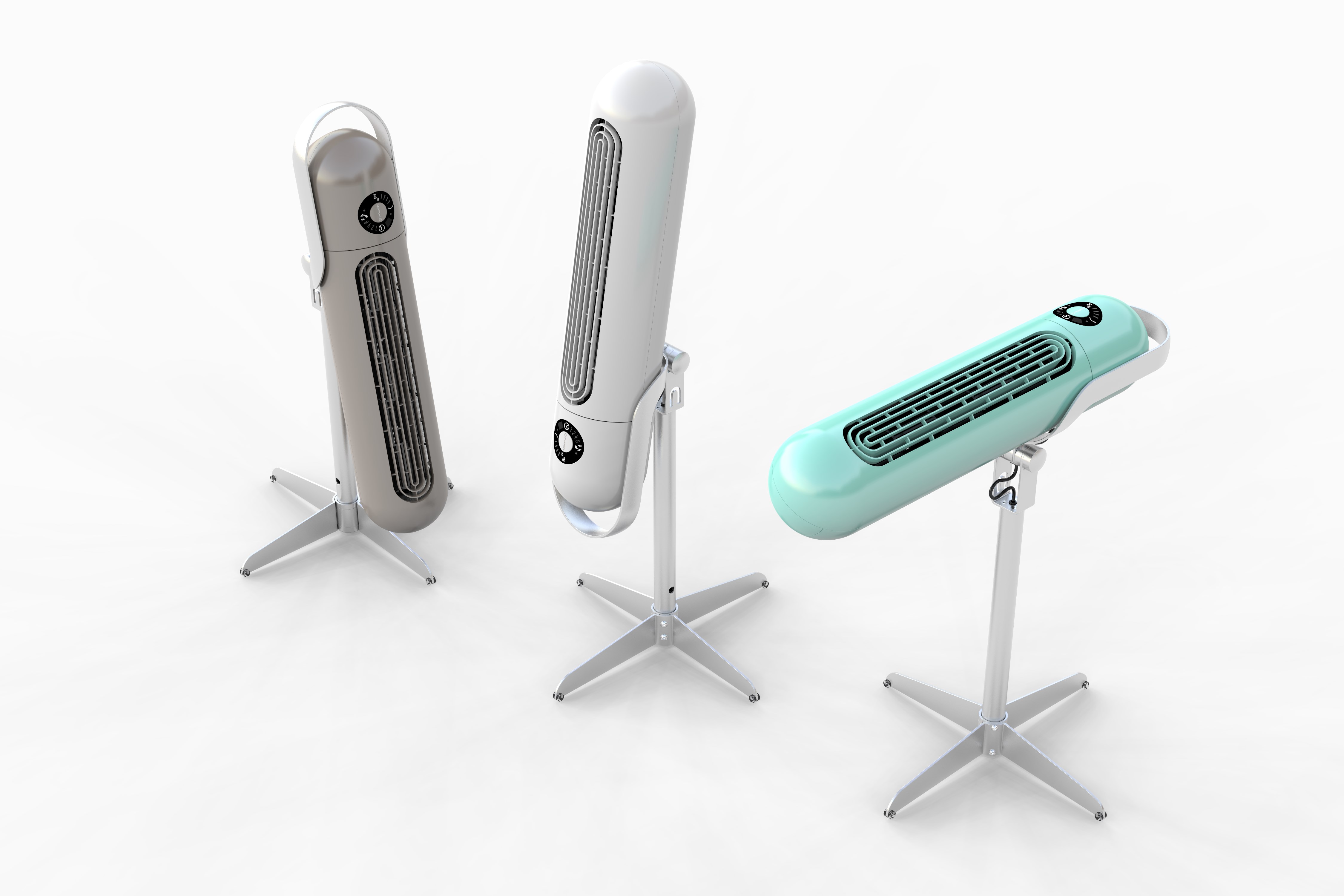 そしてもうひとつ。細長いカプセルのような形が目を引くのは「AirStick」。本体を低くすると高さが65cm以下になるので、一般的な押し入れの下段に収納したり、部屋の角などに収めることできる。マンション派には嬉しい設計だ。