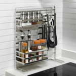 狭いスペースを効率的に活用できる「コンロサイドラック」は、水回りで使用しても錆びにくいステンレス素材を使ったバータイプの収納ラック。付属のバスケットやS字フックを引っ掛けるだけで、キッチンにあふれかえった調理道具などを“見える化”してすっきりと整理・整頓できます。