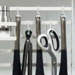 空いたスペースにはS字フックを掛けて、トングやレードル、調理ハサミなど、よく使うものを収納しておきましょう。バーには、マグネットも取り付けられるため、レシピやメモを張り付けられます。