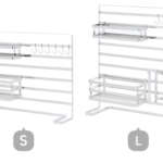 バー形状なので、収納のアイデアはあなた次第。バスケットを好きな位置に取り付けてコンロ回りなら調味料を収納したり、水回りなら食器や洗剤、よく使うコップなどを置いておくスペースにしたりと、いろいろと重宝しそう。Lサイズには「まな板&コップ掛け」の専用フックが付属されているので、さらに用途が広がりそうです。
