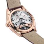 ダークブラウンのレザーストラップにもケースと同じ9Kブロンズゴールド製バックルを合わせることで、ステンレススティールモデルとはまた異なる表情を見せています。