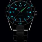 ベースとなる文字盤には、スーパールミノヴァを塗布し、その上にインデックスと数字をカッティング加工したプレートを重ねるという凝った作りになっています。インデックスには60年代初期の「シーマスター 300」で使われていたオープンスタイルのアラビア数字を採用。また、秒針には人気の高かったロリポップ針を復活。ベゼルには硬度を高めるために、シュウ酸陽極酸化処理を施したアルミニウムが使用されています