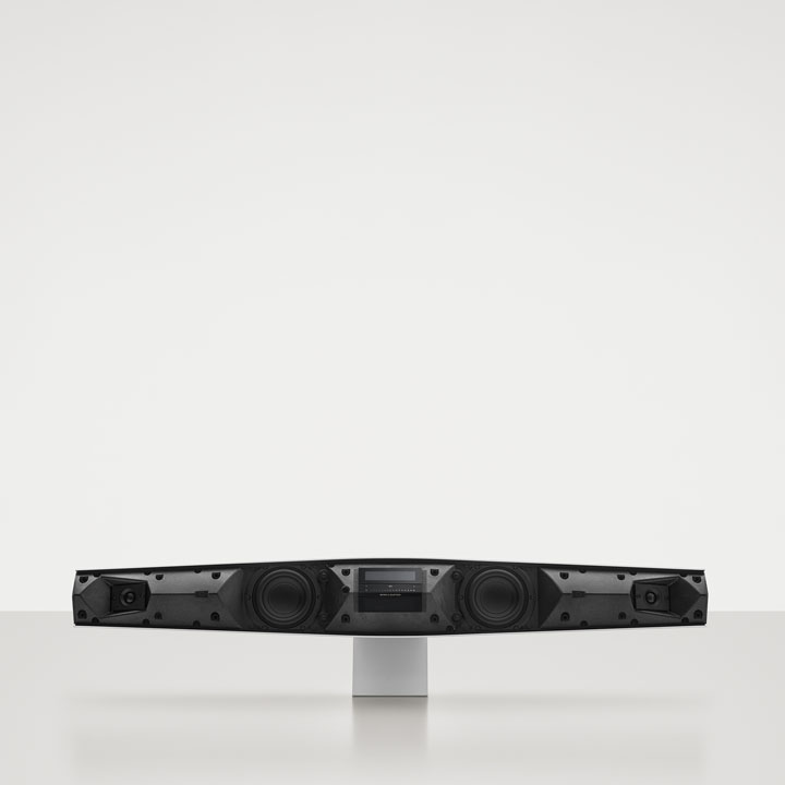 操作もカンタンで、中央のディスプレイ上に表示されるボタンに触れるだけ。「BeoRemote Oneリモコン」や「BeoMusicアプリ」を使って操作することも可能です。