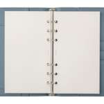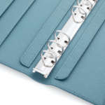 手帳を閉じる際にリングの跡がシステム手帳のカバーに付かないよう、リングの両サイドに当て革を施していたり、手帳の端を折り込んでステッチを施すことで強度を高めていたりなど、細かいディテールにもこだわったつくりに。
