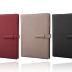 表紙のPUレザーは2種類で、柔らかな風合いが特徴のシュリンク調PUレザーと、独特な細かい筋模様の型押し加工が印象的なサフィアーノ調PUレザーから選べます。