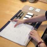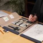 収納した小物は振っても落下しにくいようになっていて、さらにフリップワークバッグは本体から取り外して筆箱のように立てられるので、即座に仕事環境を構築できます。フラップ部分にはカードホルダーも付いているため、名刺やクレジットカード、付箋なども収納しておけます。