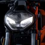 ヘッドライトの形状もシャープで、車体のイメージにピッタリ。もちろんLEDで明るく広範囲を照らせるタイプで、悪天候下でも視認性の高さを確保しています。