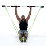 「R3BAR」は、滑り止めのついたアルミ合金製のバーの両脇と自分の足に伸縮する抵抗バンドを取り付け、その状態でバーを上げ下げすることで、負荷をかけながらワークアウトができるというプロダクト。強度の違う2種類のバンドを付属し、小さな負荷でのリハビリから高度な筋力トレーニングまで行えます。