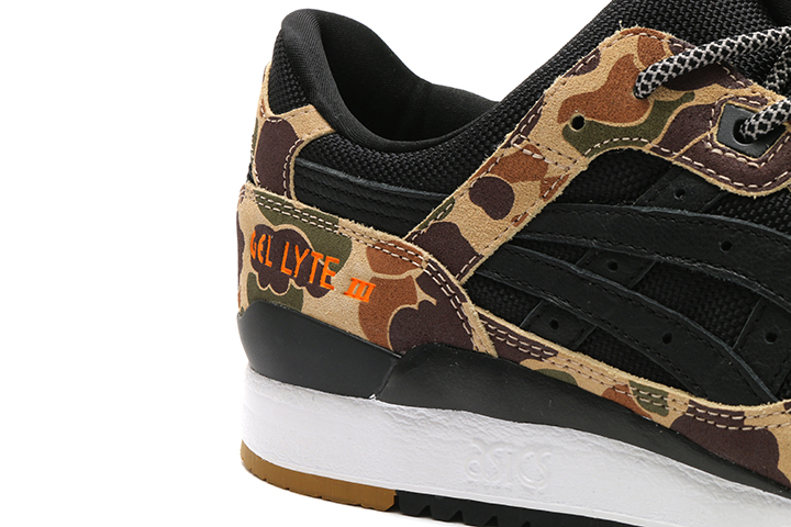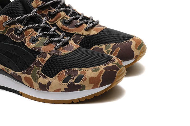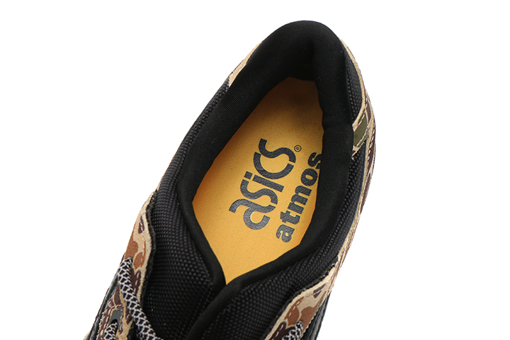 今作はアッパーに採用されたダックカモと、幾何学模様の丸ヒモが大きなポイントとなっているのだが、実は2015年にリリースされたコラボレーションモデルに続く迷彩シリーズとなっている。コラボレーションモデルなどをマメにチェックしているスニーカー好きの方なら、もしかしたら覚えているかもしれないのだが、昨年、アシックスタイガーとatmosのコラボレーションによるウッドランドカモを採用したシューズが発売されている。