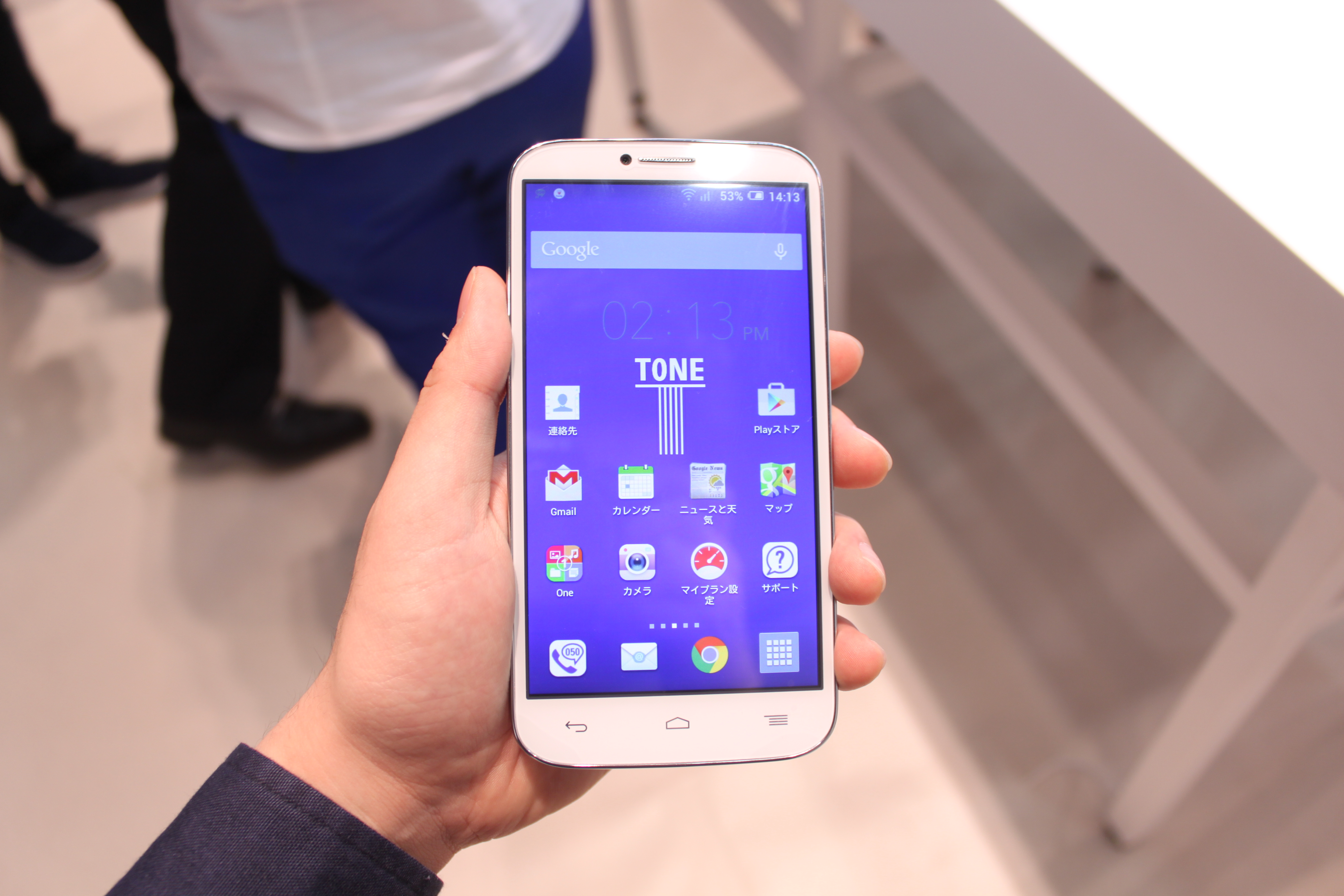 今回発表されたスマホ「TONE」は、フリービットモバイルが販売していた「Pand A」をリニューアルした端末です。本機はどちらかというとコストを重視したエントリー向けのモデルなので、あまりハイスペックではありません。ディスプレイは5.5型でも、画質は960×540ピクセルのqHD。また、OSはAndroid 4.2、CPUは1.3GHzのクアッドコアを採用しています。