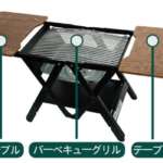 この「LUPINグリル&テーブル」は、1台でBBQグリルとアウトドアテーブルとしての機能をこなすマルチパーパスなアウトドア用ローテーブル。グリルやコンロのついたアウトドアテーブルはこれまでにもありましたが、なんといっても魅力は、その組み立ての簡単さにあります。