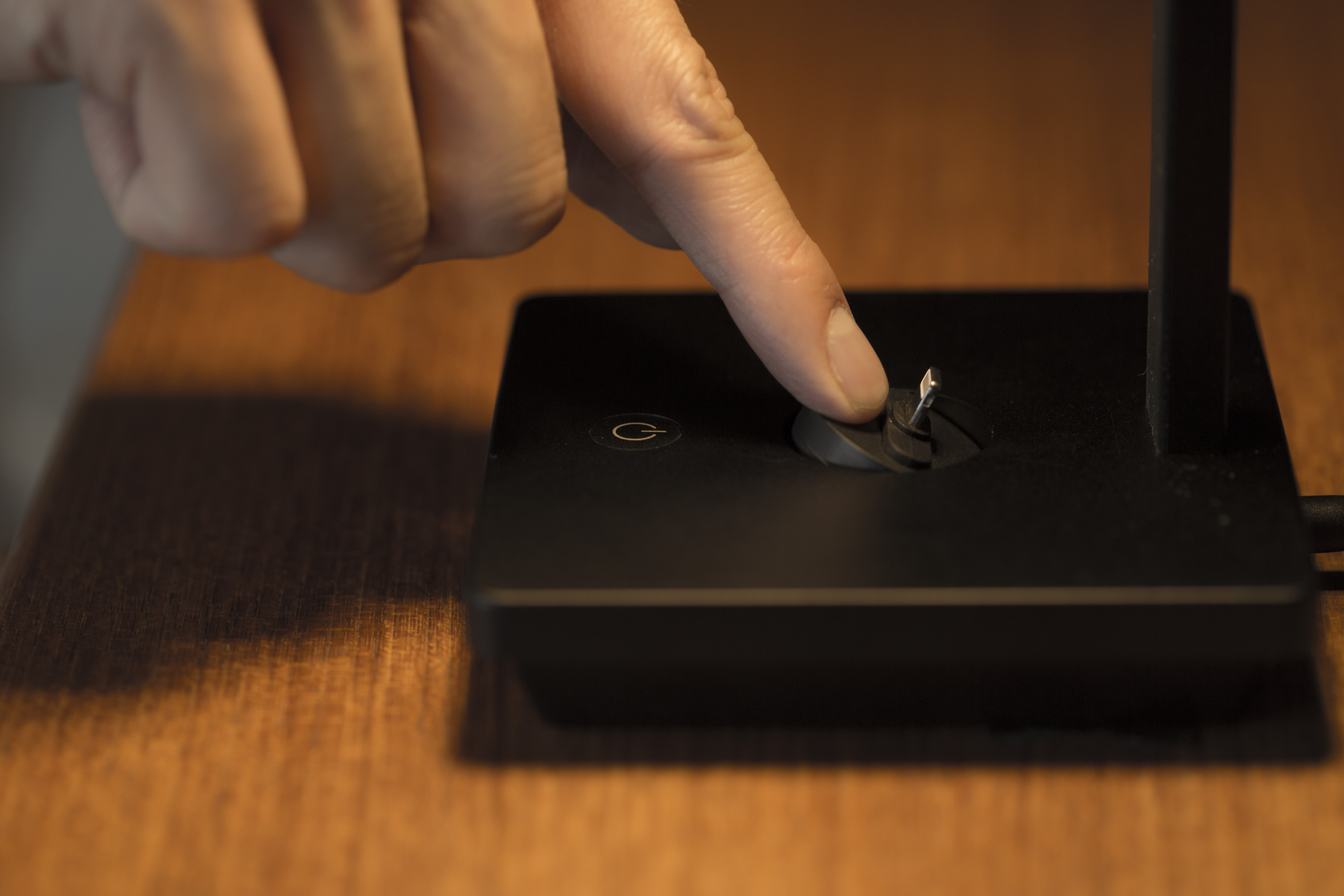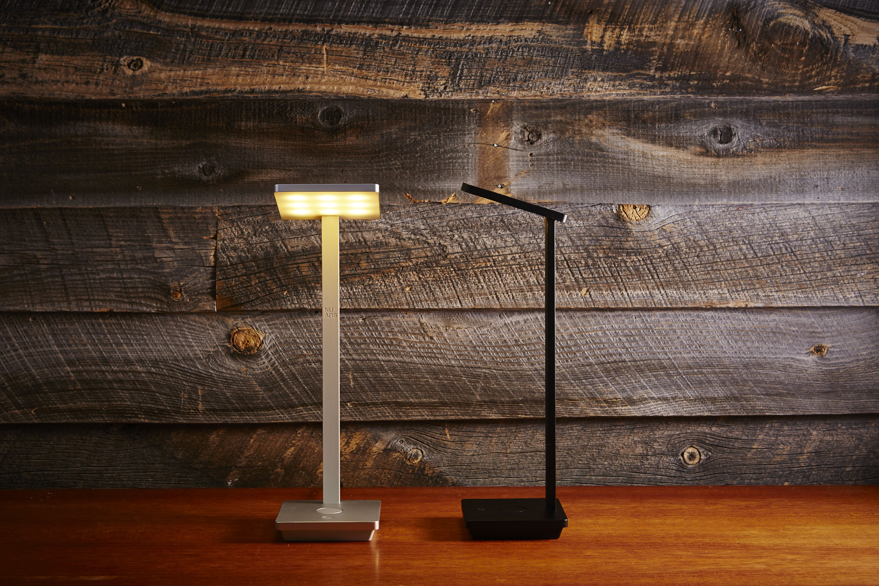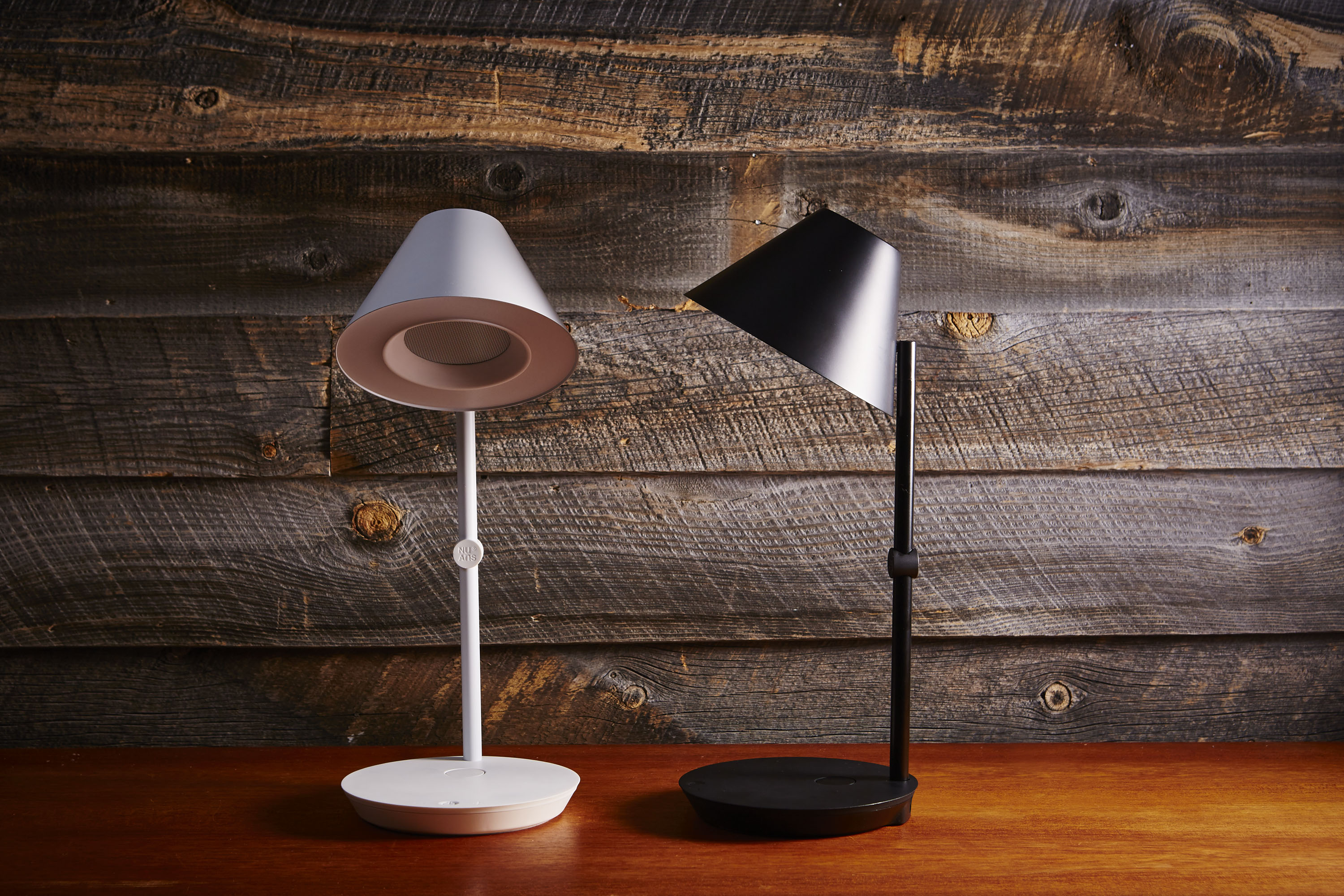 台座にLightningドックを備えたLED照明スタンド「TILE」。Lightningドックは使うときだけ、くるりと向きを変えて引き出し、iPhoneやiPadを好きな角度でセットして充電できます。電球色と昼光色に切り替えられ、無段階の明るさ調整が可能など、照明器具としても気が利いています。背面にはUSBコネクターも。市場予想価格は1万6200円。