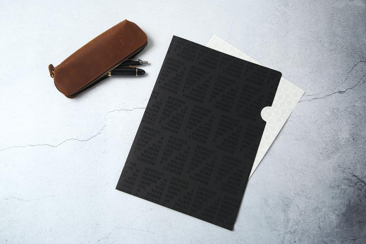 身近なプラスチックといえば他にペットボトルが有名ですが、オフィスで大量に使うプラスチック製品といえばクリアファイルがあります。このことに着目したエストニアのRethree OÜが開発したのは、なんと紙製のクリアファイル「エコフレンドリーファイル」(220円)です。