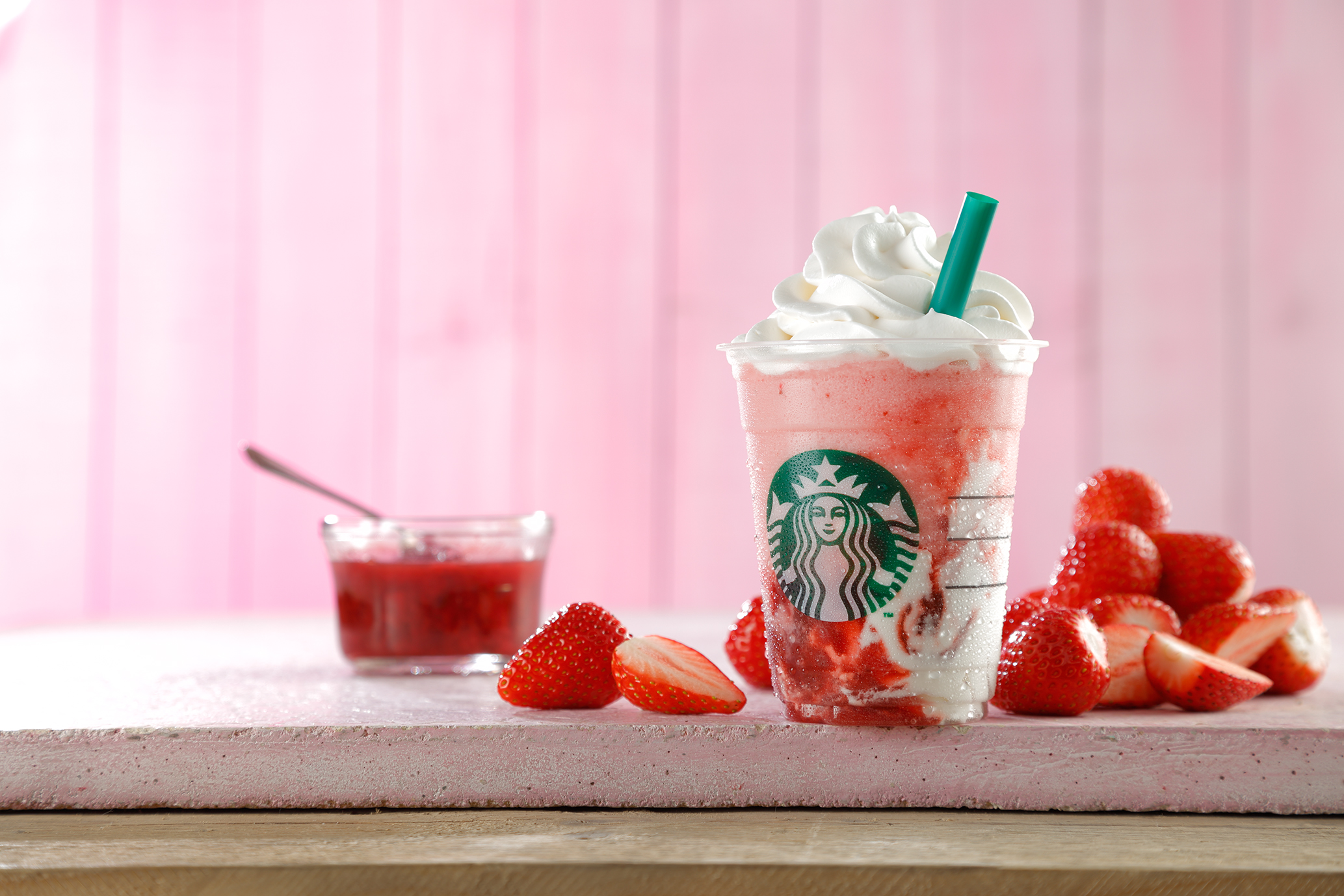 ワイドストローで吸い込んだひと口目から美味しさを味わえるよう、カップの底にはホイップクリームが。このクリームがたっぷりのストロベリーソースと溶け合って、フルーティーでクリーミーな味わいを生み出します。