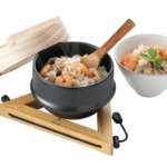 「ひとり羽釜土鍋」はソロキャンプに最適な1合炊きの土鍋で、側面にツバがあって底部分が丸い羽釜形状の土鍋です。本体の他に木蓋とアタッチメントがセットになっており、専用のアタッチメントをセットして使えば羽釜が安定。羽釜下部に熱を集中させることで、ムラなくふっくらなご飯を炊けます。