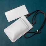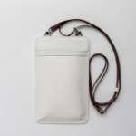 「モバイルショルダー」はスマホをすっぽり収納できパスポートなども入るメインポケットひとつのほか、背胴にカードポケット3カ所、外ポケット1カ所 、取り外し可能なポーチ付き。サイズはW11×H18×D1cm、重さは150g。