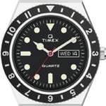 「Q TIMEX」は、機械式から電池式(クォーツ)へ本格的に移行する時期に発売され、通称「ペプシ」カラーと言われる赤と青に塗り分けられたアルマイト加工の回転式ベゼルが人気を博した1979年のオリジナルモデルを、細部まで忠実に復刻したモデルです。