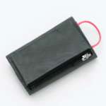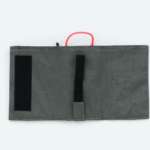 面ファスナーで留めるタイプの三つ折り財布で、折り畳んだ際は約6cm×9.5cmというカードサイズ。広げた状態では、お札を折らずに入れられます。