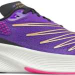 ひと際目を引くバイオレットカラーのアッパーは、通気性とフィット性を高めたニット仕様。グリップ性と耐久性に加えて重量バランスにも優れたアウトソールは、推進力を得られるスイートスポットが広く、足裏がどこに接地してもスムーズに足を前へと運びます。