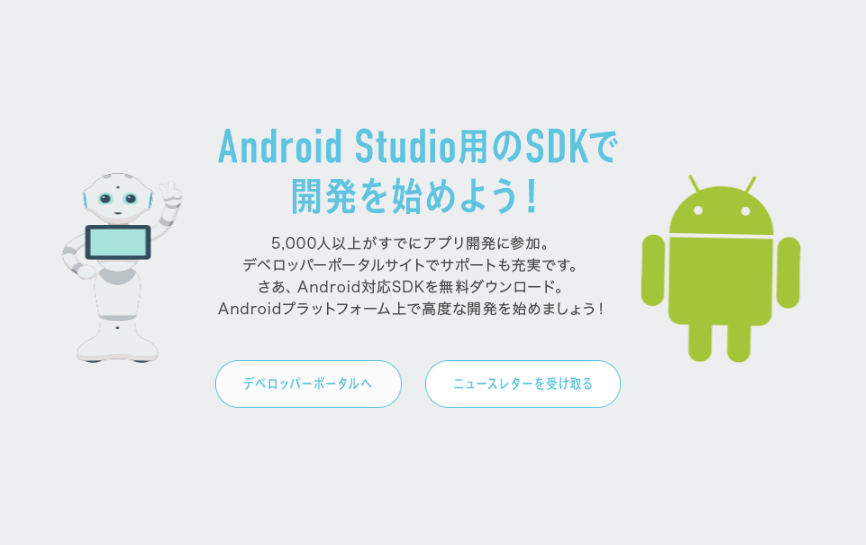 Pepperを動かすアプリを作るには、従来「Choregraphe(コレグラフ)」というSDK(ソフトウェア開発キット)が使われていました。しかし、5月19日より新たなアプリ開発プラットフォームとして「Pepper SDK for Android Studio」のベータ版が提供されています。この試みにおける最大のポイントは、「Androidのアプリ開発者がPepper向けのロボアプリに挑戦しやすくなること」です。