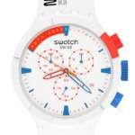 「BIG BOLD CHRONO EXTRAVEHICULAR」は、NASAの宇宙飛行士が1983年に初めて着用した白い宇宙服からインスピレーションを受けています。クロノグラフには、一般的な12時位置のアワーマーカーではなく、最後の10秒間がレッドで強調されています。これはロケット打ち上げのカウントダウンを意識したデザイン。