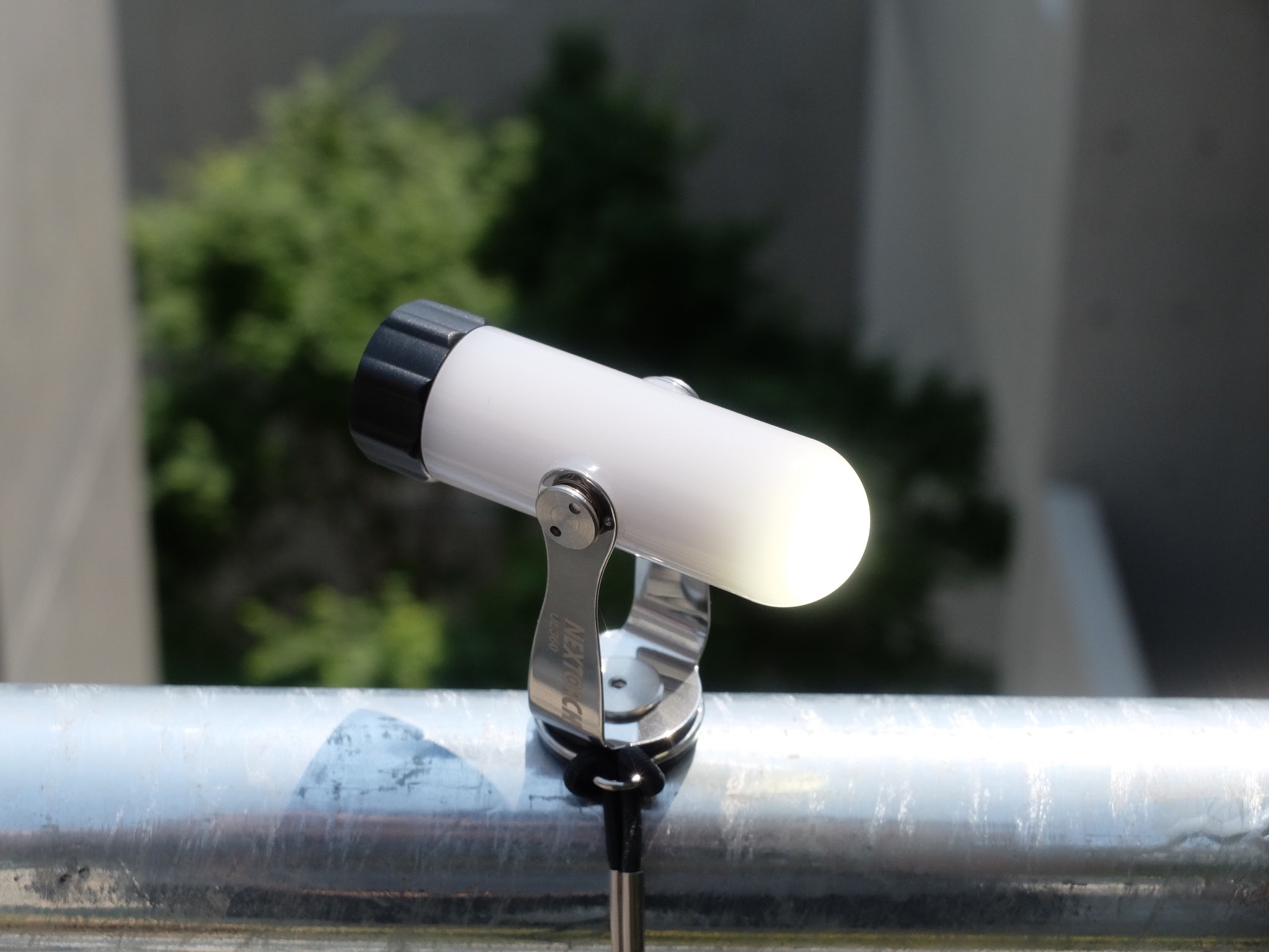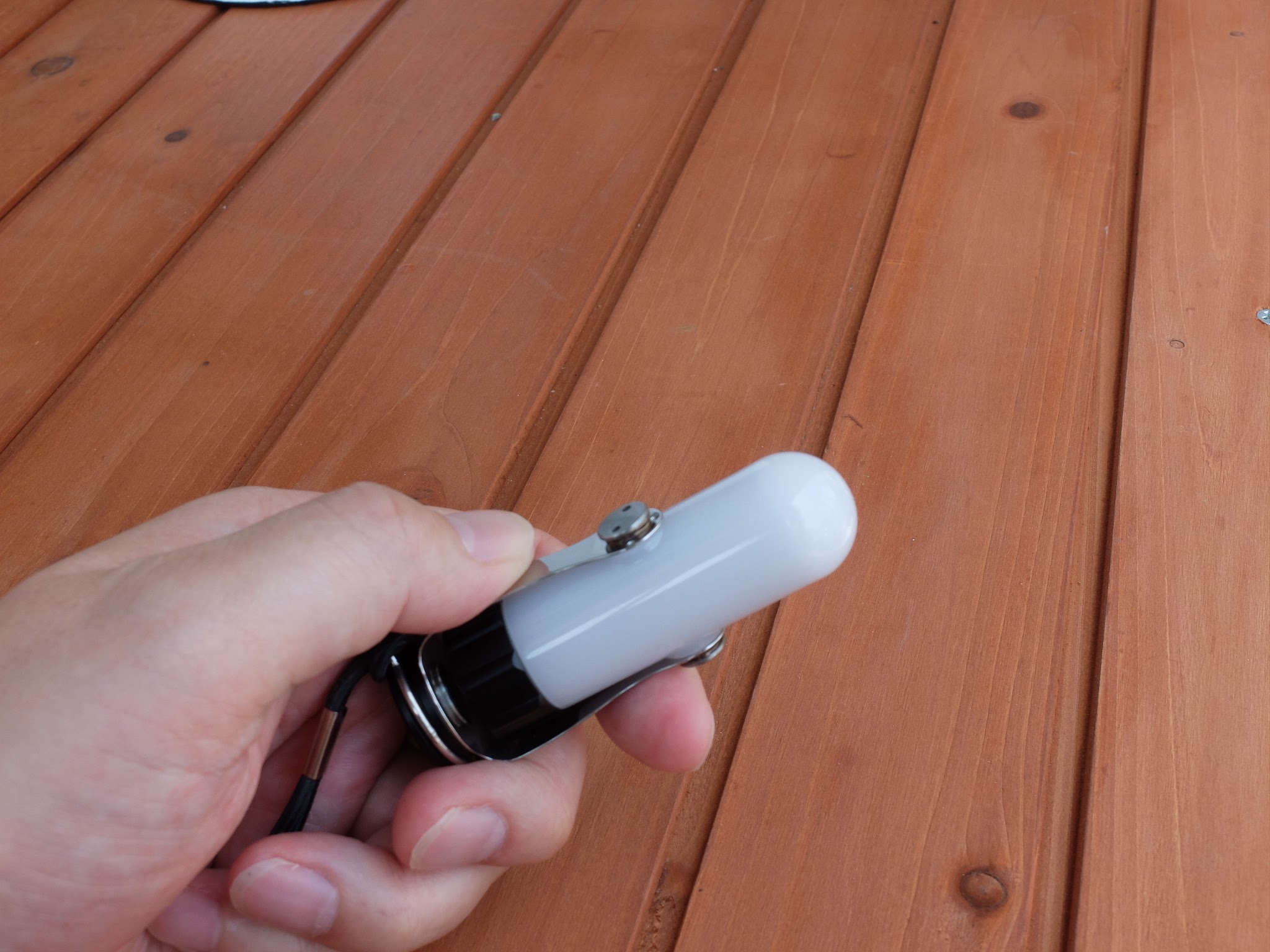 本体は縦に360°回転し、台座は横に360°回転するので、テント内を自在に照らすことができます。
