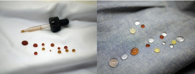 ワインやジュース、コーヒーをこぼしても、上から水を流すだけでキレイに流れ落ちるというから驚きだ。