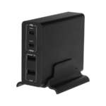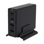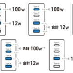 ポートは、USB Type-Cポートが2つと、USB Type-Aポートが2つの合計4つ。上側にあるType-Cポートは、USB Power Delivery 100Wの超速充電に対応しており、MacBooKなどのノートPCを充電することが可能。2つのポートの合計出力は100Wとなっているので、同時使用した場合は出力が自動的に調整されます。