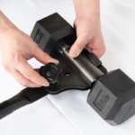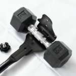 取り付けられるダンベルは、グリップ径が28〜35mm、ダンベル幅は100mm以上、耐荷重は60kg(片側30kg)と、一般的に使われているほぼ全てのサイズに対応。ダイアル可変式ダンベルを用いれば、複数のダンベルを用意しなくても簡単に重さを変えられます。セットしたダンベルを固定するネジが大きくて長いので、外れて落下する心配はありません。