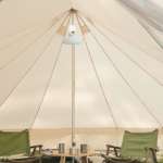 「MUTO LEDランタン付きコードレス扇風機」は、カラビナと併用すれば、タープやテントに吊るして使えます。夏は涼しい風を送り込んでくれるだけでなく、冬には暖かい空気を循環させてくれるので、一年を通してキャンプ環境を快適にしてくれます。
