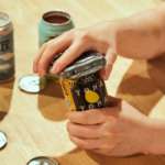 使い方は至ってカンタン。「Draft Top 2.0」を缶の上に取り付けて握り、左右にギュッギュッとツイストさせるだけ。するとプルタブ面(缶の天面)がキレイに切り取られて、フルオープン状態を作れます。しかもバリや切り残しが生じないので、指を滑らせても怪我をする心配なし。そのまま缶に口をつけてゴクゴク飲めます。