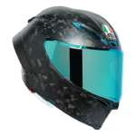 マットに艶めくシェルの模様は、フォージドカーボンならでは。頑丈でありながら信頼できる機能美をたたえています。レーサー感を醸すプロスポイラーも一体感があって美しい! アウターシェルは100%カーボンファイバー製で、インナーシェルは、耐衝撃性の高いEPS構造を5段階の密度で仕上げています。