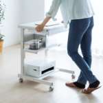 ワンルームなど自宅での作業スペースが限られている人にとって、最適な仕様といえるパソコンラック。また、キャスター付きなので使わない時は移動させられる点も助かります。