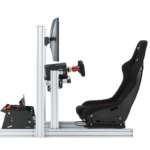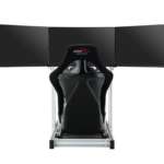 完成時のサイズはベース部分が幅630mm(モニター3画面設置時は幅1300mm)×奥行1400mm×高さ820mmと、堂々たるコックピットに。レース系ゲームの他、飛行機のシミュレーターでも迫力の映像と操縦感を楽しめそうですね。