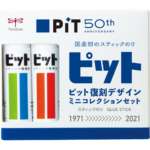 今回、復刻となるパッケージは全部で5種類。1971年に発売された「第一号ピット」の図柄2種と、1970年代にスポット販売された「香りピット」、1977年発売の「ピット事務用」、1982年発売の「ピットスーパー」です。上記5種類を化粧箱に入れた、2万セット限定の製品となっています。