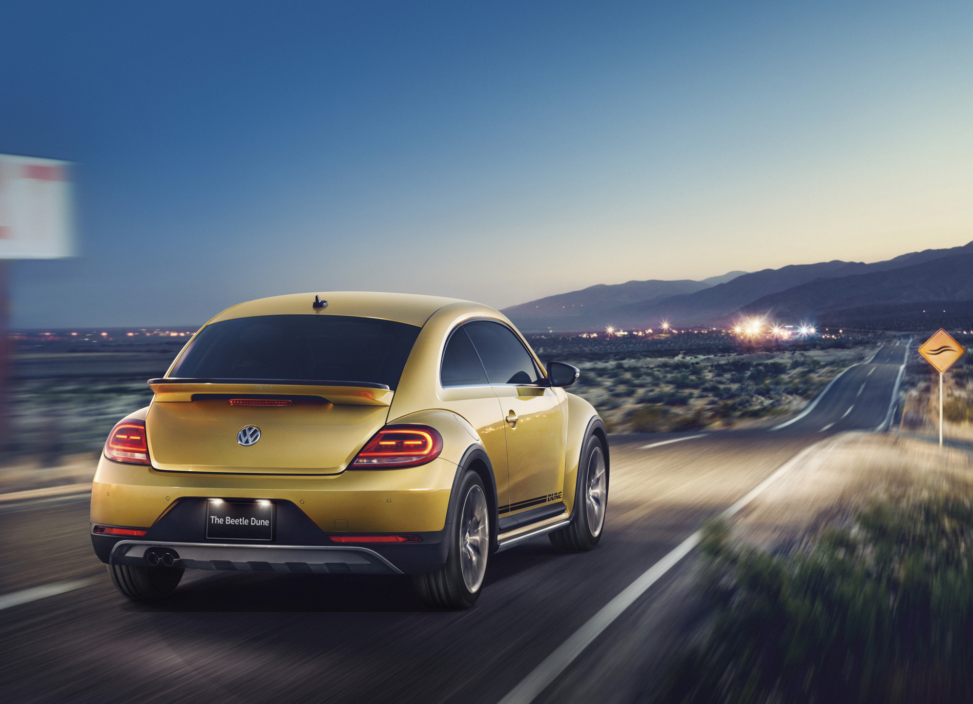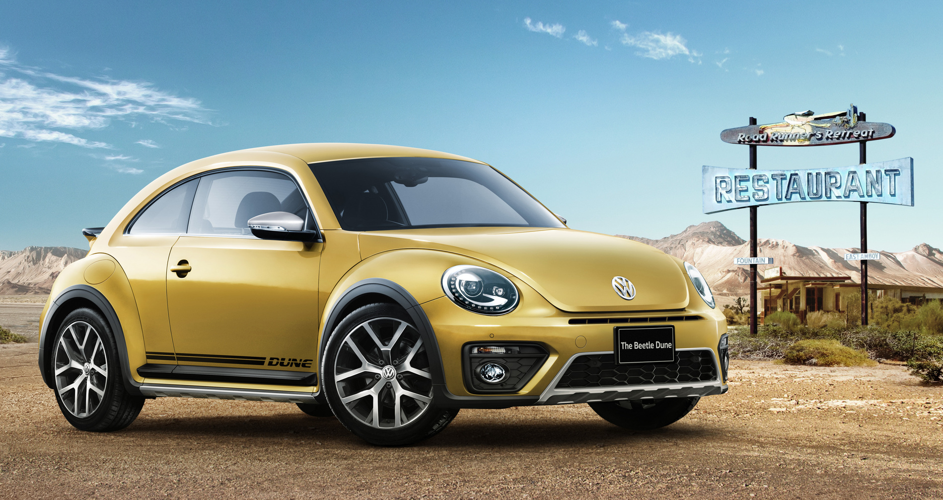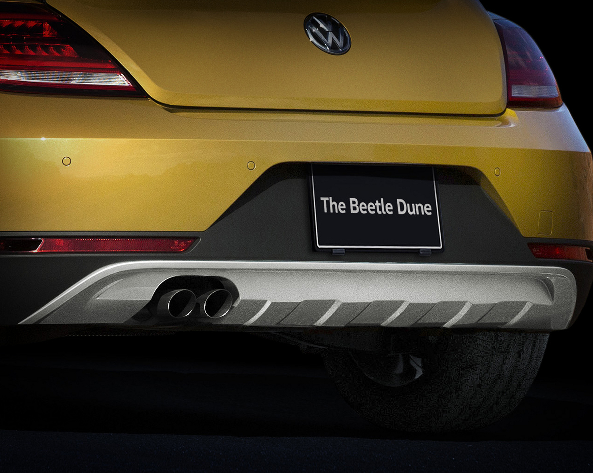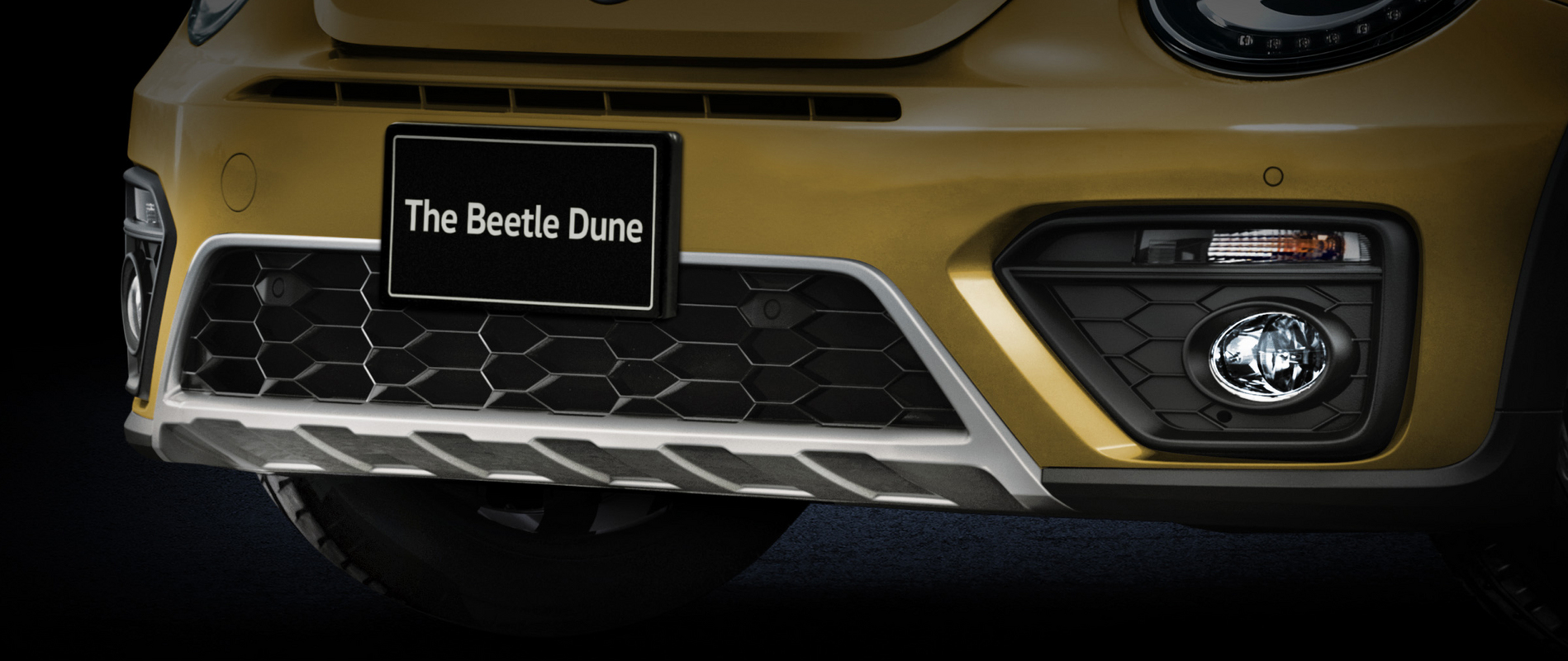 ザ・ビートル デューンは、専用サスペンションの採用によって車高アップ。その量はプラス15mmと控えめですが、ホイールアーチなどにブラックのボディプロテクションを追加してワイルドなルックスに仕上げているのは、「クロスポロ」「クロスアップ」を始めとする、フォルクスワーゲンのクロス系モデルではお馴染みの手法。