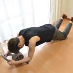 初めての人は、膝の下に膝パット(2枚付属)を敷いた「膝コロ」から始めてみましょう。膝をつくことで負荷を軽減できるので、初心者でも気軽に腹筋を鍛えられます。膝パッドを使えば、いちいちマットを引かなくても思い立ったらすぐにトレーニングできるものうれしいですね。