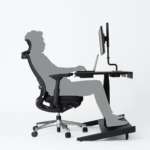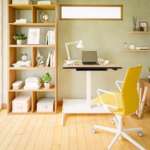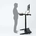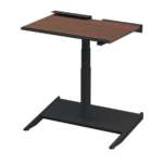デスクの広さは95×66cmとコンパクトで、リビングや寝室のちょっとしたスペースにも設置が可能。デスクの高さは手元のレバーによって64~130cmまで調節ができ、デスクを低くすれば、斜めになったフットレストに足を乗せてゆったりとした後傾姿勢で仕事をすることも。休憩時間などリラックスしたい時には最適です。