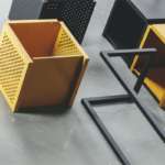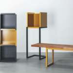 カラーはパンプキンイエロー、オリーブ、マットブラックの3色展開。ボックスのデザインは全3種類、W350×D350×H725mm、重さ約5kg。フレームは、W700×W350×D350mm、重さ3.8kg。スペーサーや扉、木天板を自由に組み合わせることで、自分だけのインテリアを楽しめます。