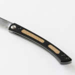 フランスのディナーナイフをモチーフにしたスリムな刀身のファルムと、VG10を芯材にした三層鋼から研ぎ出すことにより、日本刀のような美しい刃紋を実現。ステーキナイフでありながら、切れ味の鋭い短刀で食事をしているような気持ちにさせてくれます。