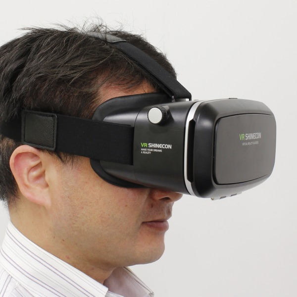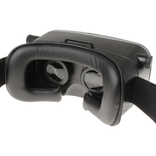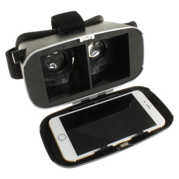 3D VRゴーグルは、縦 約104mm×横 約97mm×奥行 約145mm、重量はわずか378g。iPhone 6s Plusサイズの大型スマホも装着可能で、迫力のバーチャルリアリティ体験を堪能できる。