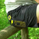 インナーには、メッシュライナー付きで、前後4つのポケットの内側にもメッシュを採用しているので、通気性もバツグン。このほか、計8つのポケットを搭載し、小物をたっぷり収納できます。両サイドのミニポケットとメッシュポケットには、水抜き穴を設け、水がたまらない仕様に。ウエストの両サイドには、カラビナループを備えているので、ここに色々なアウトドアギアを吊り下げられます。
