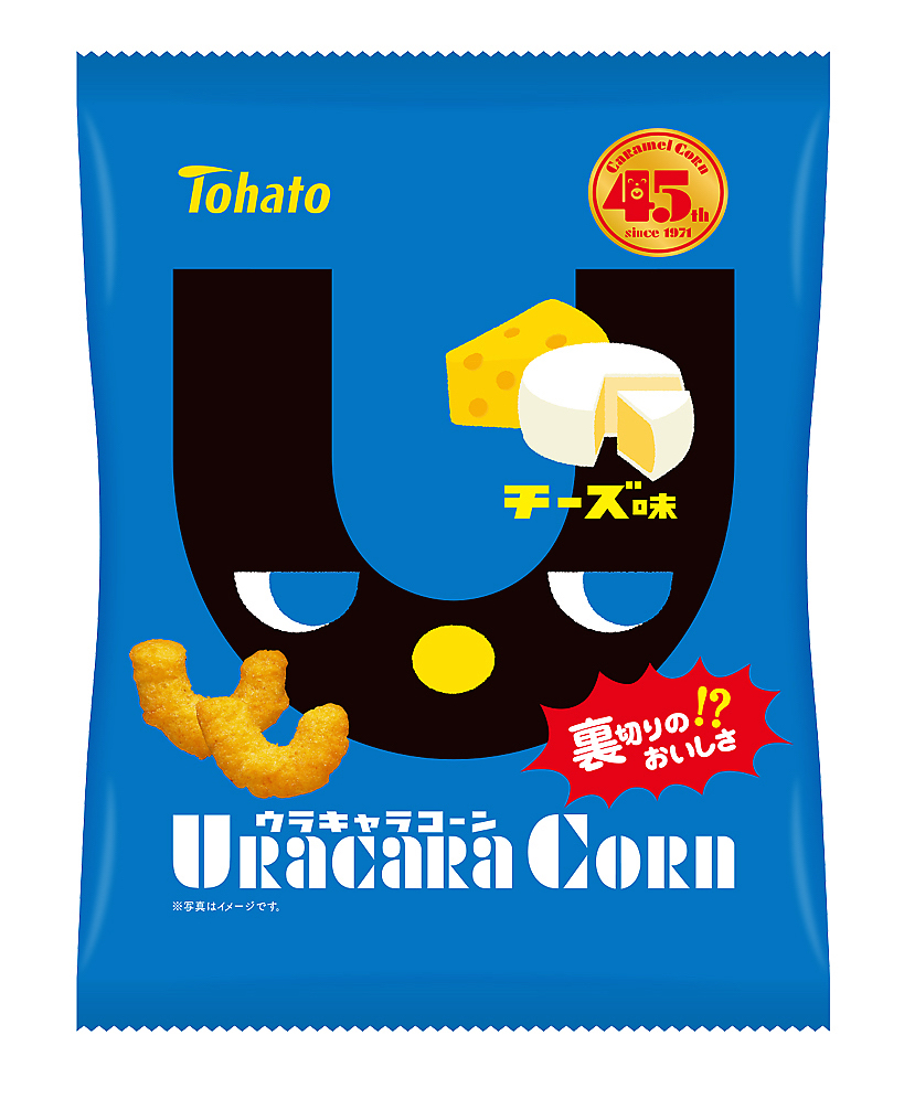 その名も「ウラキャラコーン・チーズ味」は、おなじみの「カリッ、サクッ、ふわっ」の食感はそのままに、まろやかでコクのある風味に仕上げた新スナックだ。