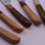 両刃なので、右利きでも左利きでも使えるのも便利。柄は手触りの良い桜とウォルナットの天然木を使用したツートンカラー。柔らかな丸みを描いて手にしっくりと馴染み、持ちやすさもバツグンです。