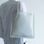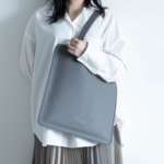 サイズは、W38.5cm×H40.5cmの縦長で、平手のハンドルは肩にもかけられる長さ。マチがなくスリムな印象ながら、MacBook Pro 16inchまでのノートPC やA4サイズの書類も入り、スマホや財布、ウォーターボトルなど日常の荷物を持ち歩くには十分な大きさです。
