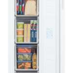 「AQF-SF10K」は、W360×D635×H1455mm、重量37kgというロングボディ設計のスリムなフリーザー。シンプルでスマートながら、買い物カゴふたつ分の容量(約102L)を確保。これなら食材の買いだめでもストックする場所に困ることなく、スッキリ収納できそうです。ちなみに、横幅36cmは、ピザのLサイズの直径とほぼ同等。あのサイズ感で102Lという大容量を実現できるなんてうれしいですよね。