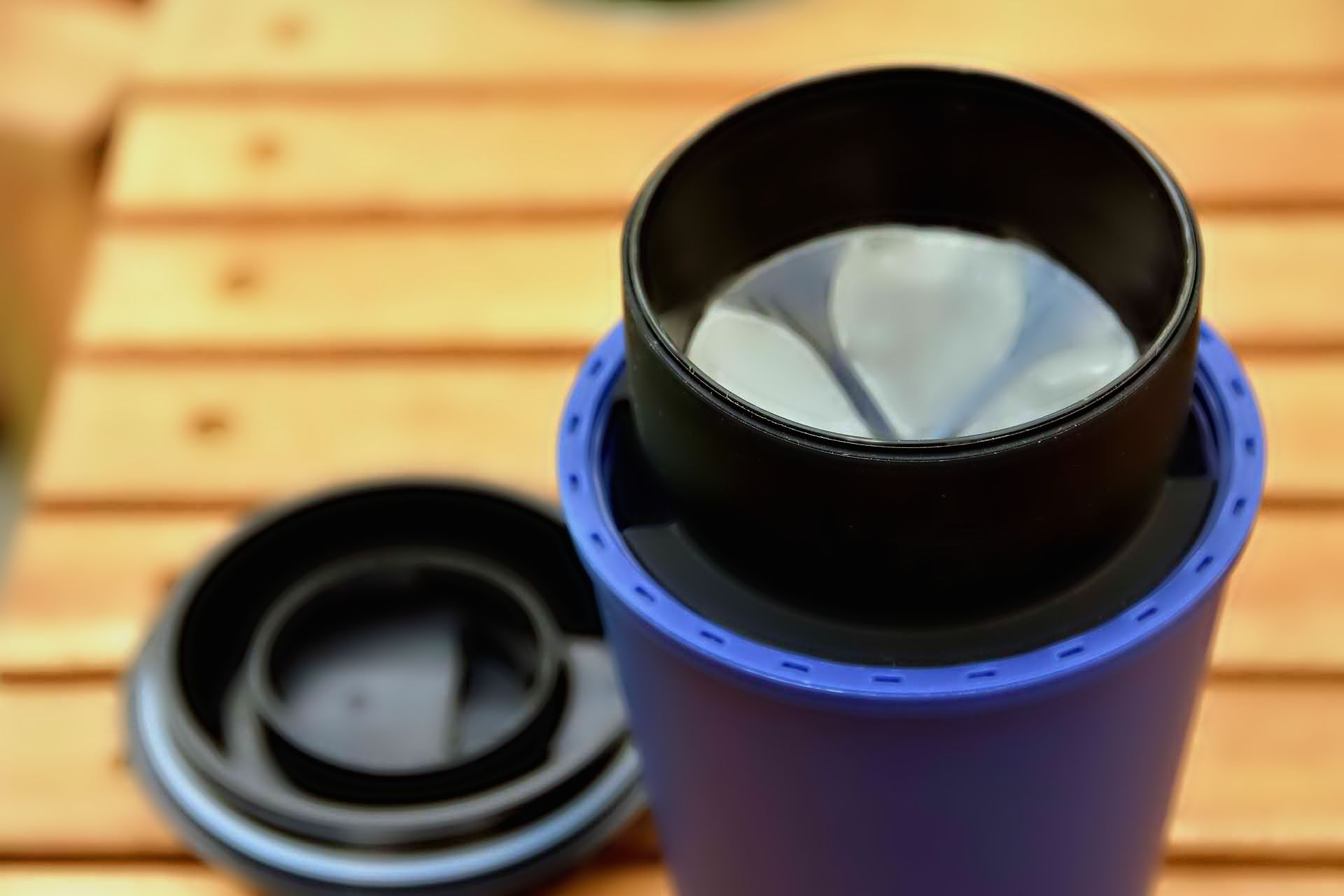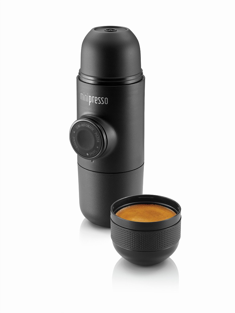 エスプレッソ派のあなたは「ミニプレッソ」を。小さめの水筒ほどのコンパクトなサイズですが、計量カップ、エスプレッソマシン、ドリンクカップまでもが一体型に。本体に粉のコーヒーとお湯をセットし、内蔵のポンプで圧力を掛けるとエスプレッソが抽出される仕組みです。