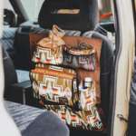 「SEAT BACK POCKET」は、運転席や助手席のシートに掛けて使用するシートバッグポケット。ティッシュボックスケースとドリンクホルダー、A4サイズの雑誌も収納できる深めのポケットなどを備え、小物で散らかりがちな車内をスッキリと片付けられる便利なアイテムです。