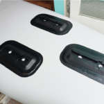 空気注入口には逆止弁構造のエアバルブを配し、また足首とボードを繋ぐリーシュコードを設置するための固定用Dリングを備えるなど、安全面の配慮も抜かりなし。