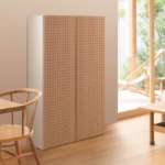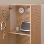 扉は外面・内面ともに有孔ボードを使用しているので、フックなどを設置すれば、簡単に小物を掛けられるようなっています。時計やヘッドホン、ガシェット類、ペン立てなど、テレワーク時に必要な周辺グッズは、有孔ボードを活用すればスッキリとディスプレイできるのでとても便利。自分だけのワークスペースをコンパクトにまとめられます。